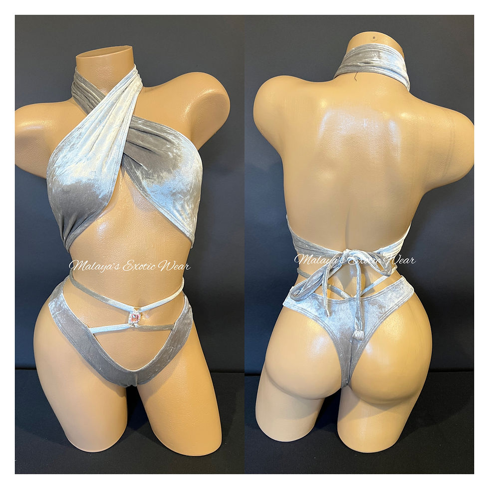 Freshen up your dance bag with this rhinestone thong bodysuit!
